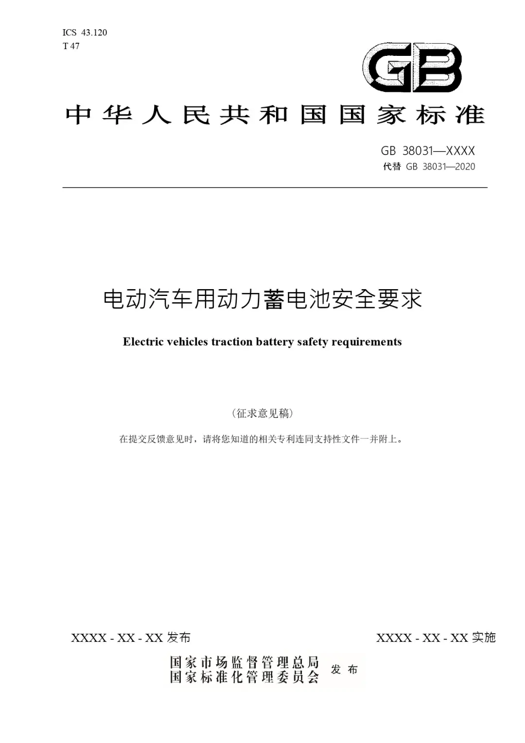 隨著新能源汽車保有量快速增加,電動(dòng)汽車起火事故仍時(shí)有發(fā)生。通過對(duì)近年來電動(dòng)汽車安全事故的經(jīng)驗(yàn)總結(jié),行業(yè)對(duì)于動(dòng)力電池在實(shí)際應(yīng)用場(chǎng)景下的失效機(jī)制也有了進(jìn)一步的認(rèn)識(shí)?;诖耍斜匾抻喭晟?/span>GB 38031《電動(dòng)汽車用動(dòng)力蓄電池安全要求》,進(jìn)一步提升安全要求,筑牢動(dòng)力電池安全底線,維護(hù)消費(fèi)者生命財(cái)產(chǎn)安全。