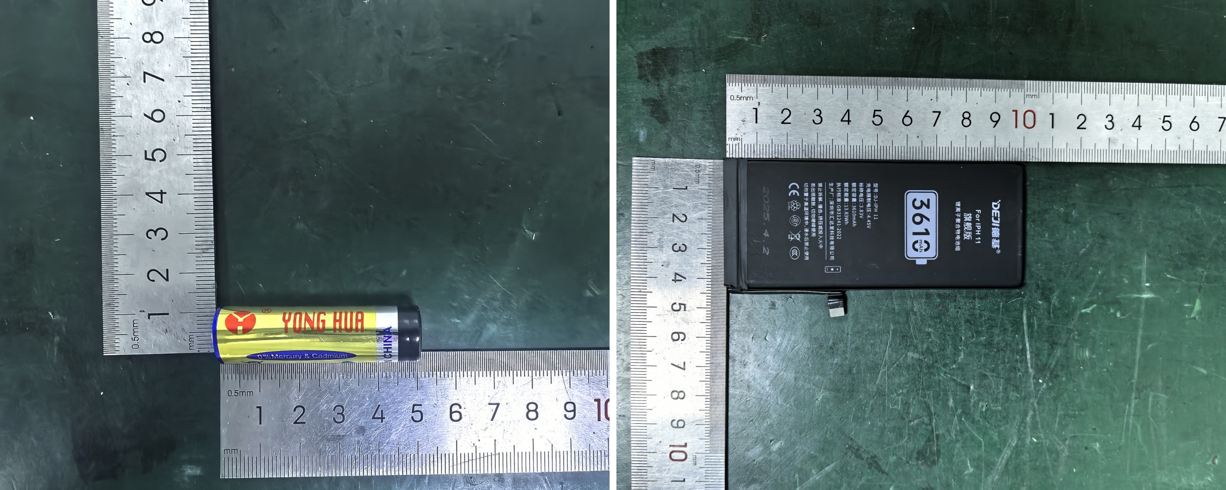 圖2 5號堿性電池(左)及NCM三元手機電池(右)