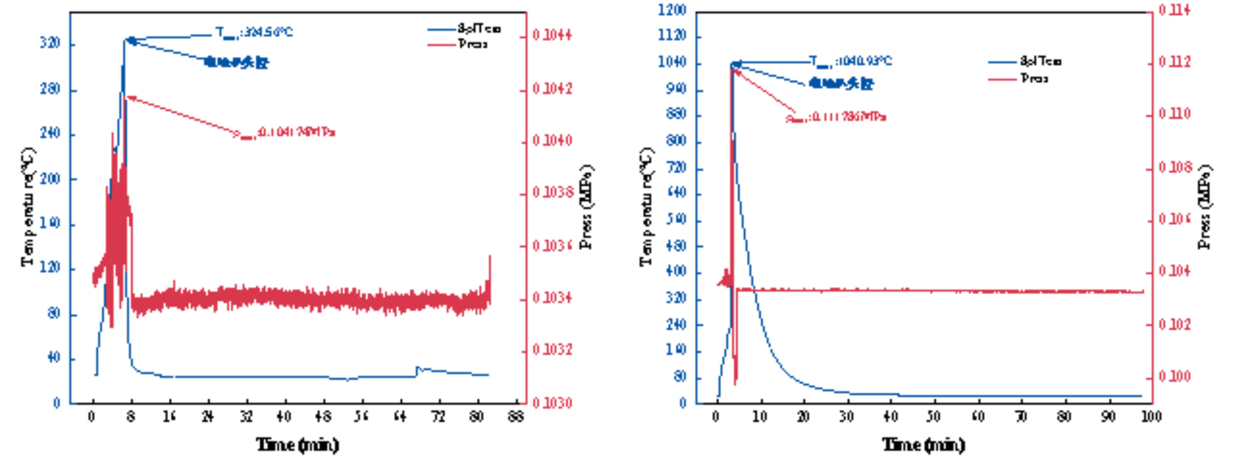 本次實驗BAC-800B大型電池絕熱量熱儀對1個5號堿性電池以及一個手機使用的NCM三元鋰電池進行測試,利用加熱片觸發(fā)電池熱失控。在實驗過程中對電池溫度、周圍氣體溫度、壓力及視頻等方法對爆炸過程進行實時監(jiān)控,并在實驗結(jié)束后觀察防火磚損壞程度。
