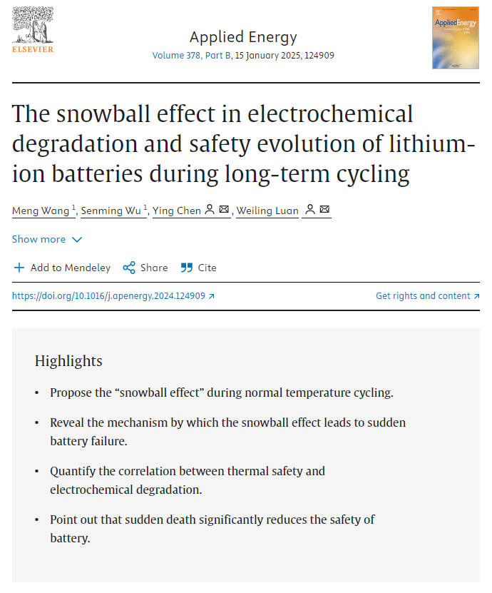 本研究中提出的鋰離子電池在長期循環(huán)過程中的“滾雪球效應”從化學、電、結構和熱的角度揭示了鋰離子電池壽命退化與安全演變之間的關系。這些新發(fā)現(xiàn)為電池的全生命周期管理、剩余價值評估和二次利用提供了新的見解。